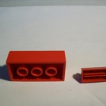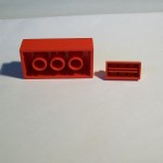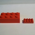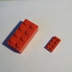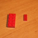 On peut voir ici qu’une brique fait la hauteur d’une plate Lego et que 2 tenons nanoblocks correspondent à 1 tenon Lego.
