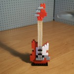 Nanoblock est une marque japonaise qui s’est lancé dans la fabrication de set de construction de type Lego avec des petites briques en plastique. Ma soeur est tombé dessus dans un magasin « Alfred, objets du quotidien ». Me sachant fan de guitare, elle m’a pris le set avec une guitare électrique rouge.