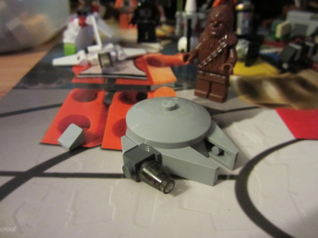 Le faucon millenium microscale. On reconnait bien le vaisseau, mais ça reste basique.
