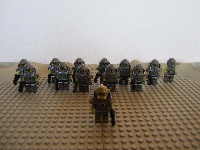 Je me suis récupéré quelques vengeur alien (que je préfère appeler Space Orks) pour me constituer une armée pour se battre contre mon régiment Space Marine. J’ai aussi fait un léger mix du cyclope avec un soldat pour faire un chef.