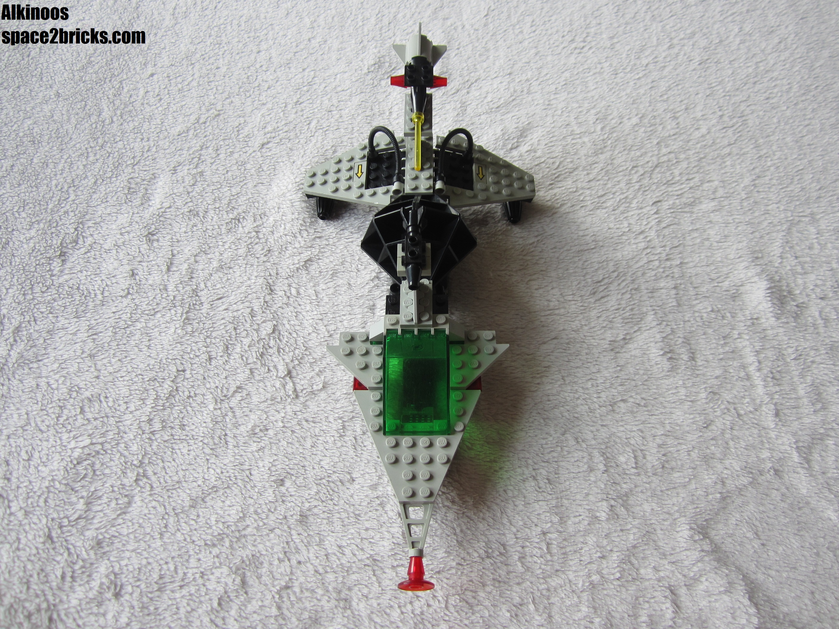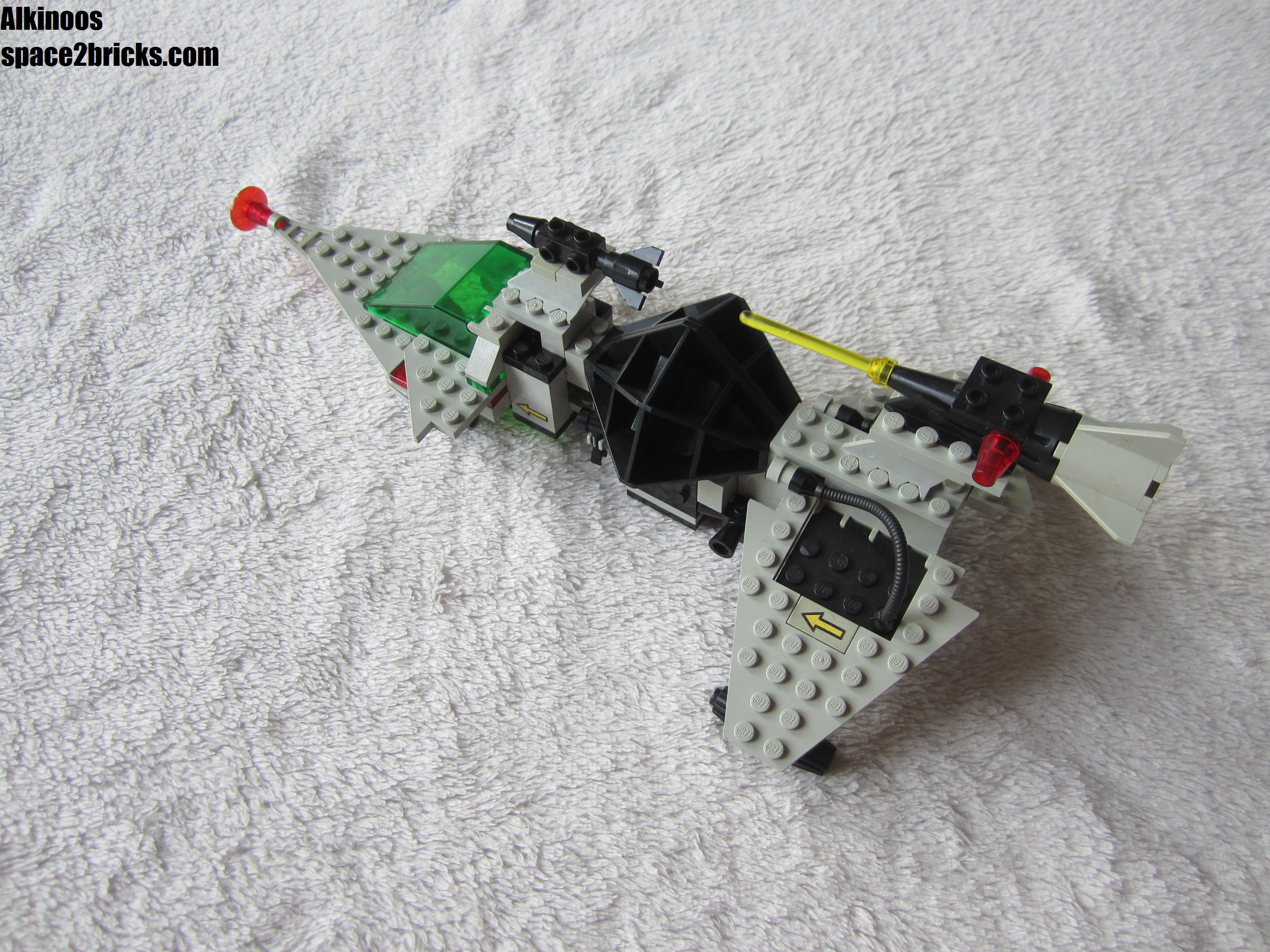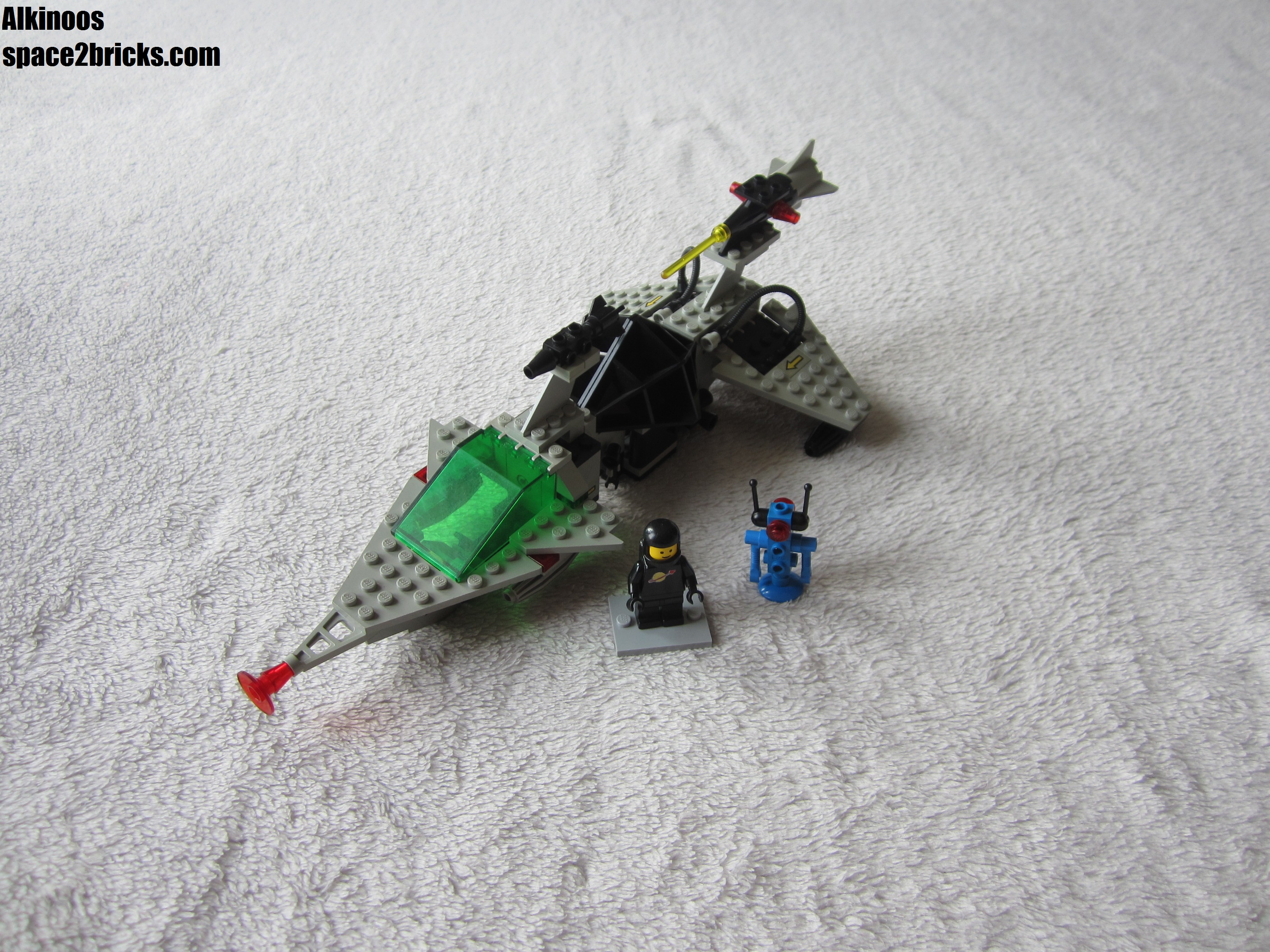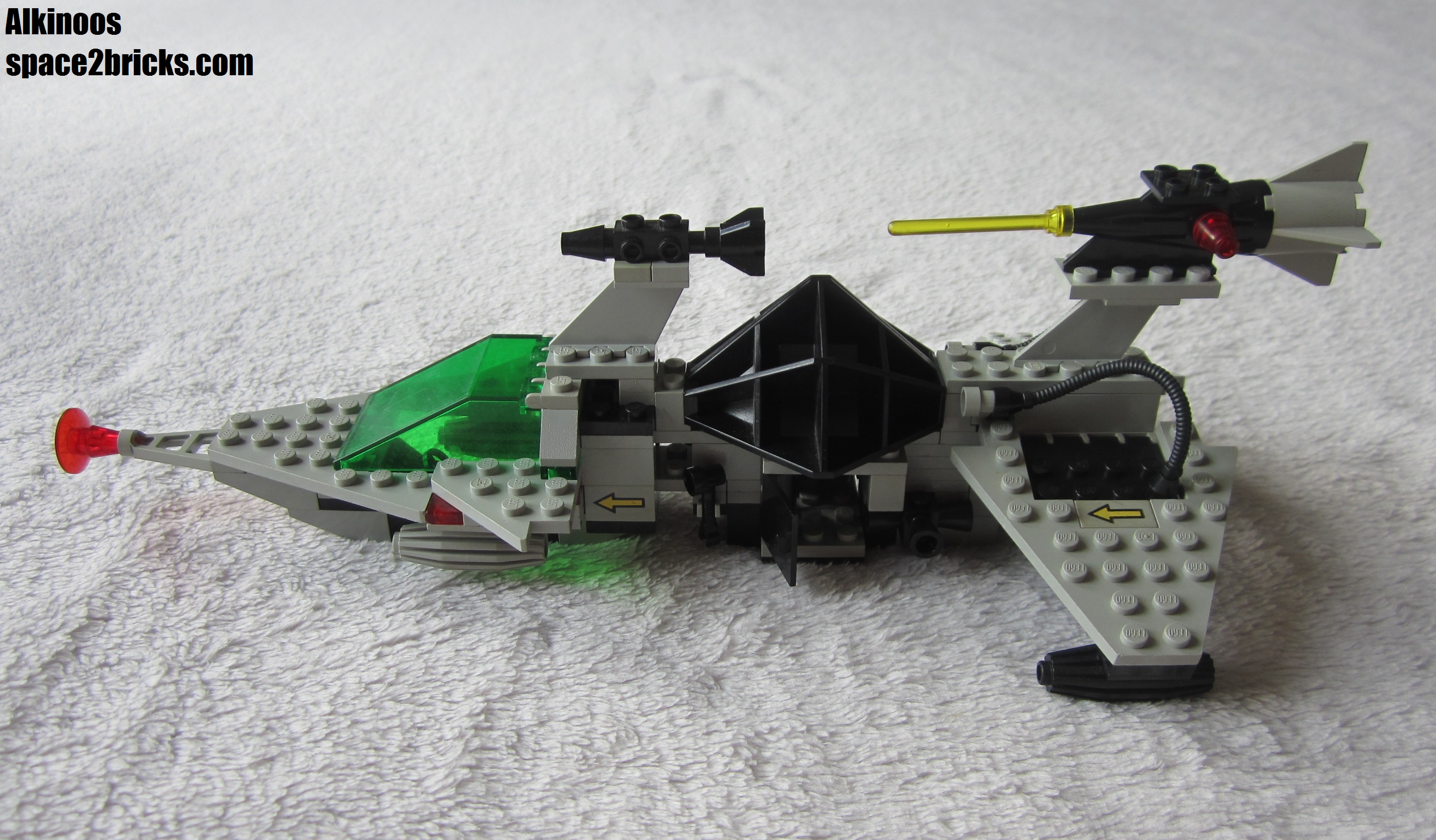 On est en plein dans l’âge du space classic et 1985 voit apparaître quelques nouveautés: les spacemen noirs (qui viennent rejoindre les blancs, rouges, jaunes et bleus), les verrières vertes transparentes et les « pièces d’angle striées ». Voilà donc le Gamma V Laser Craft.