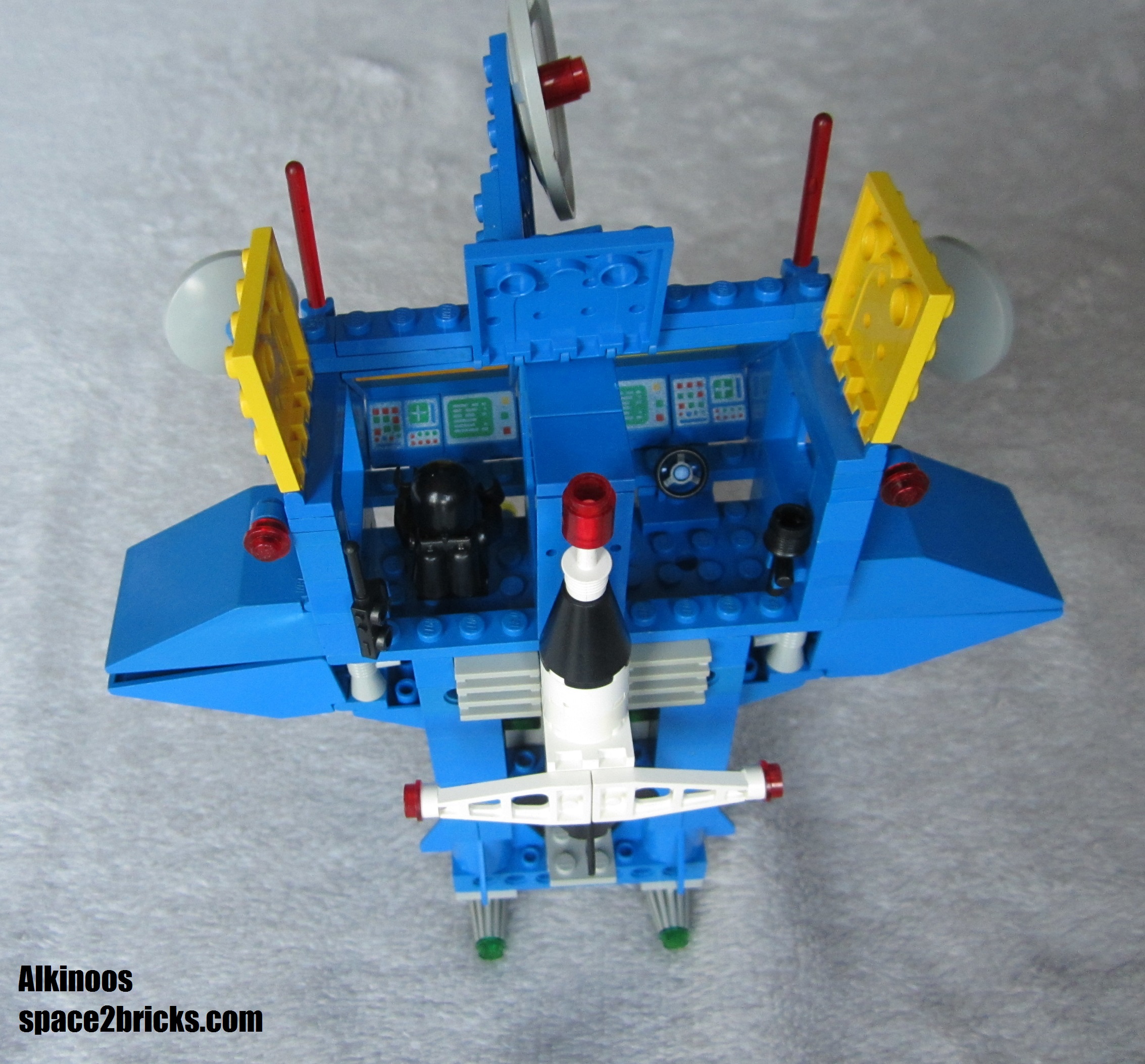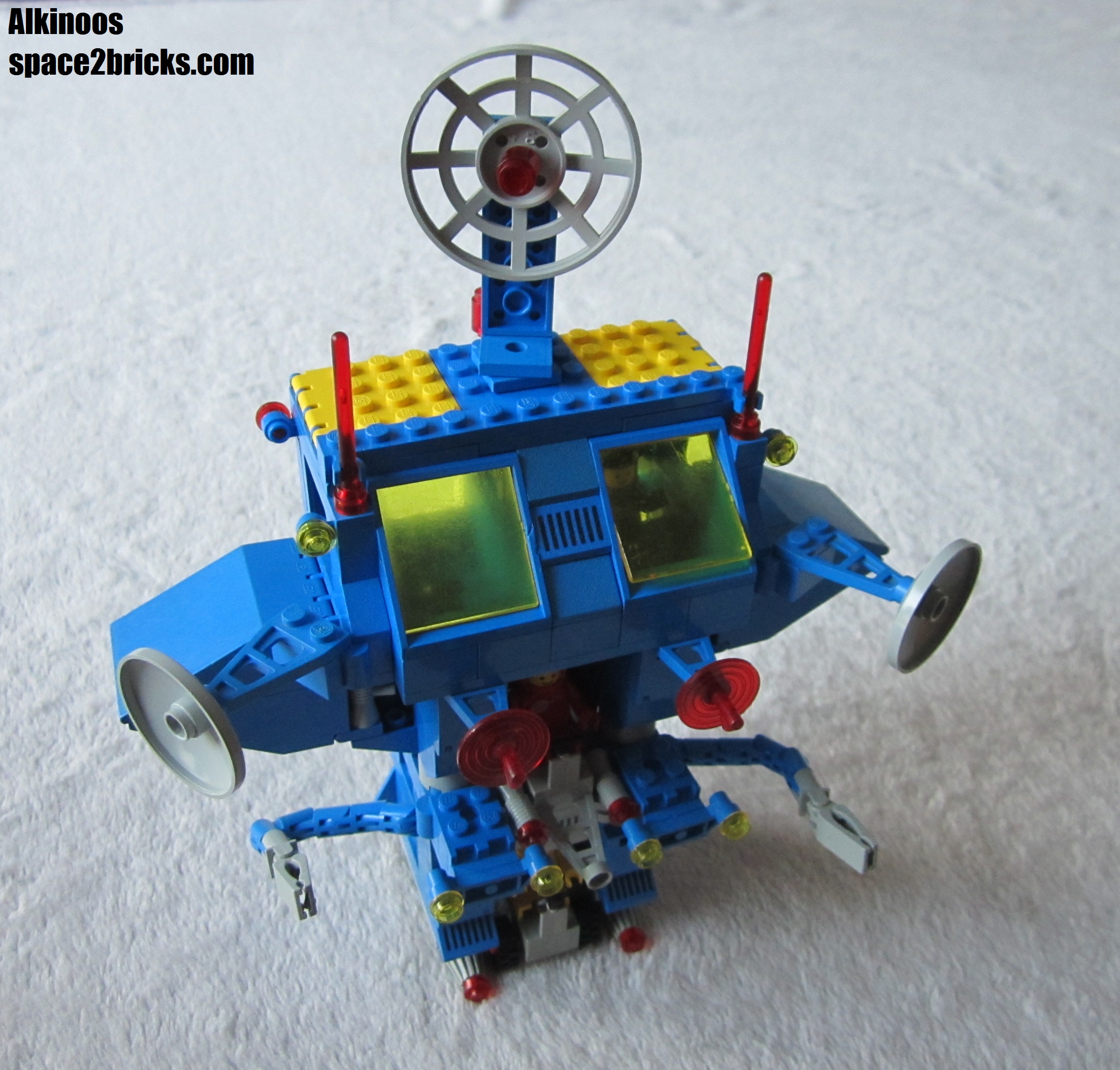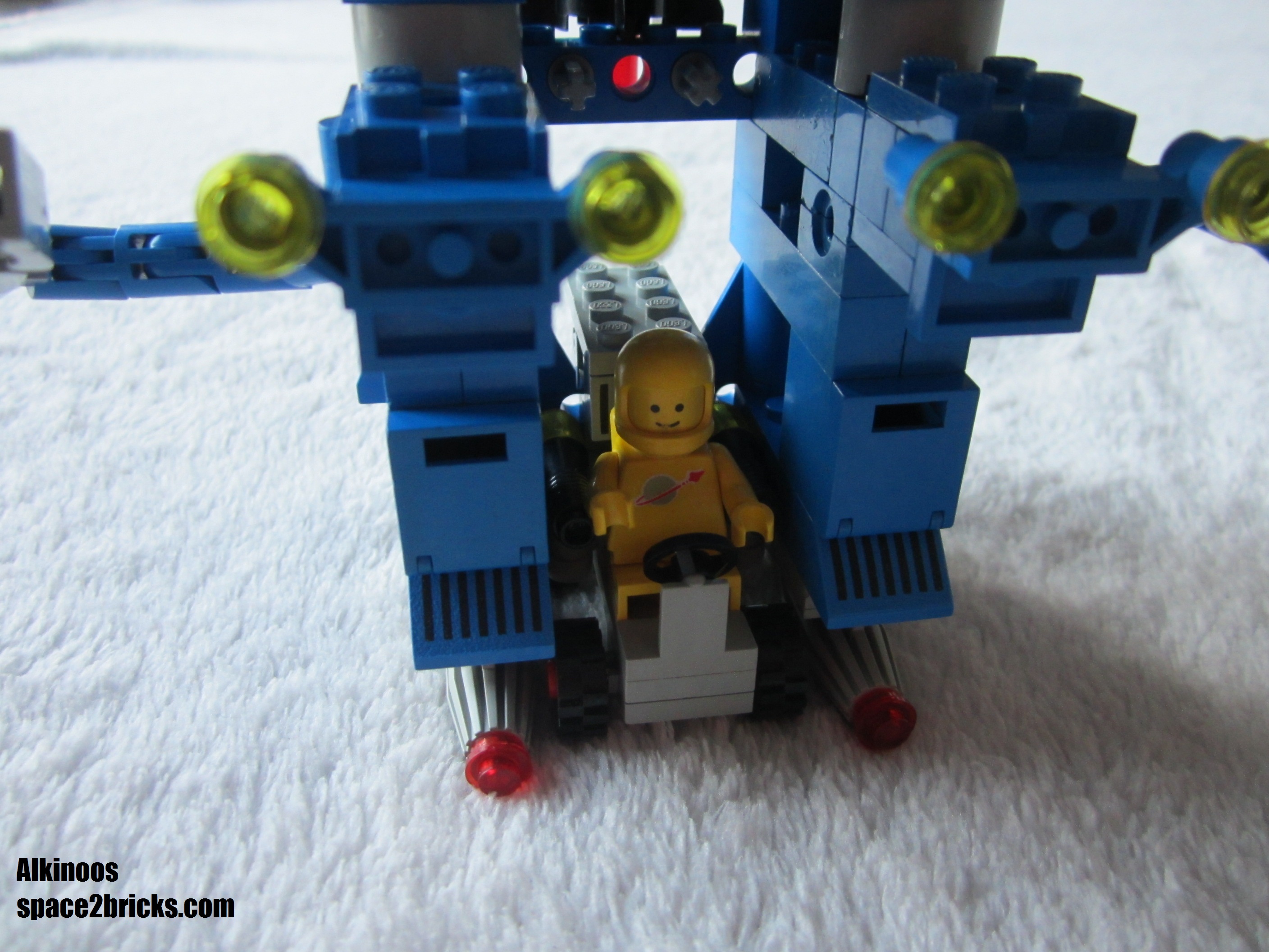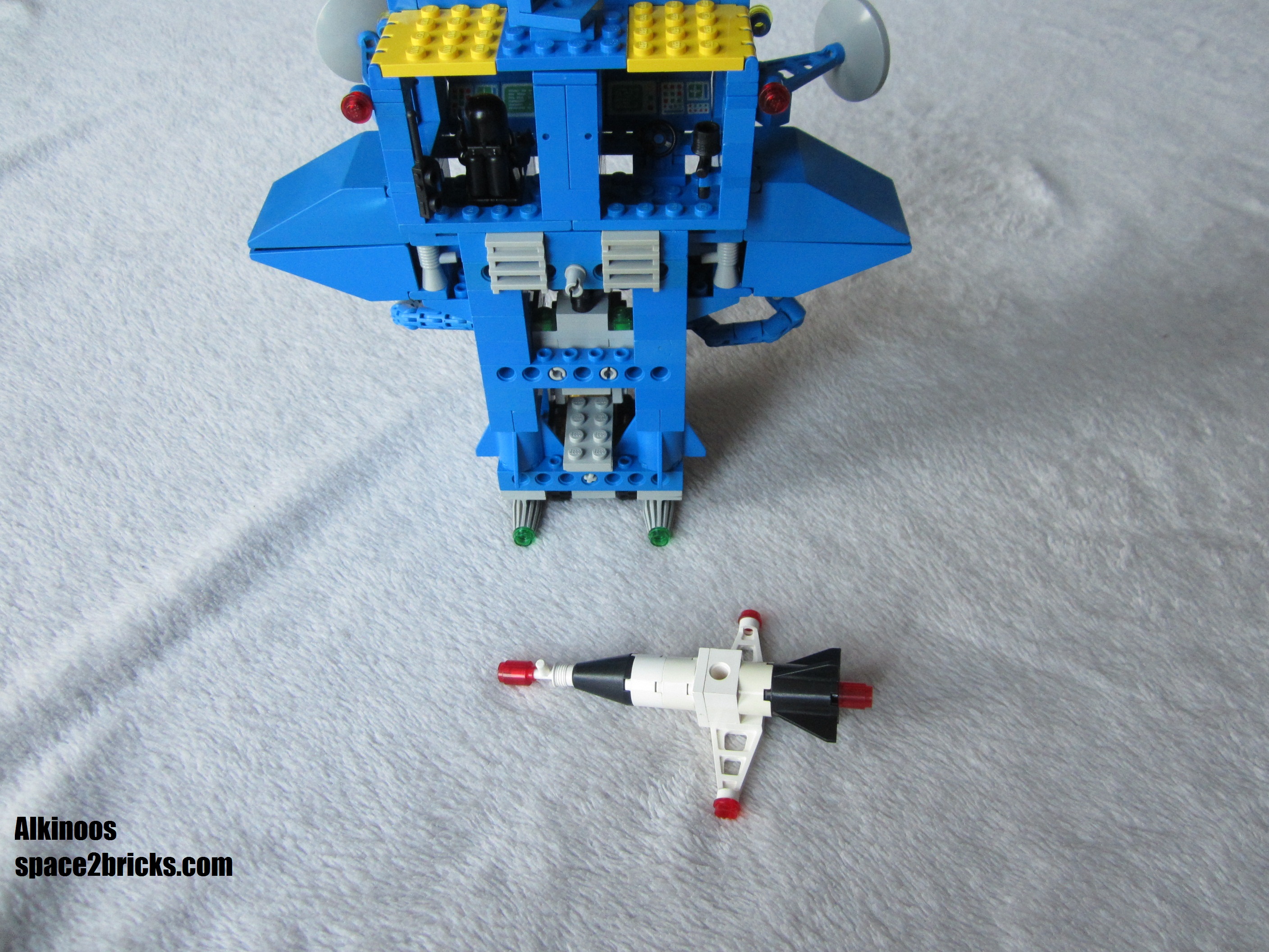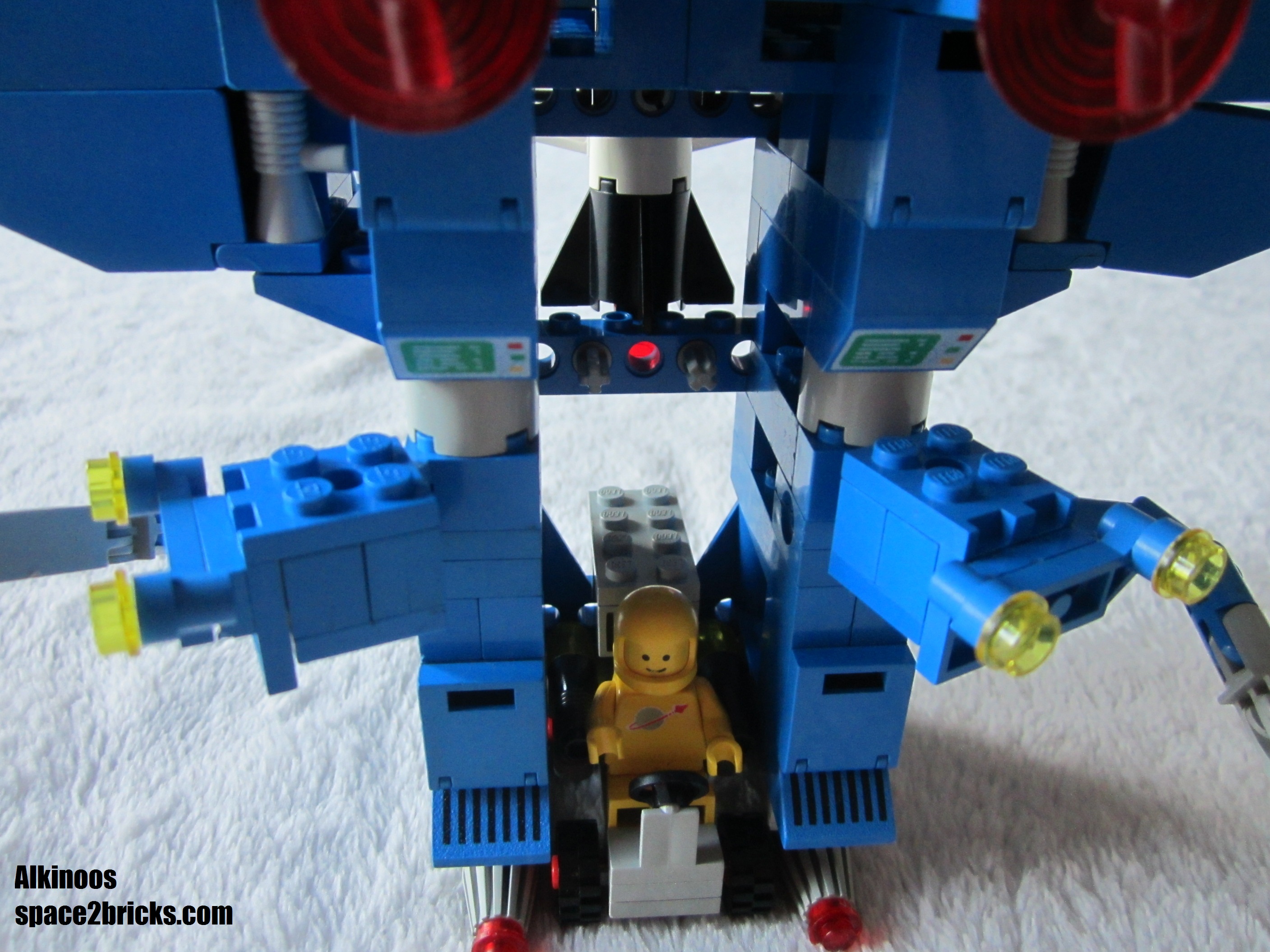 J’aime bien l’aspect général avec cette base mobile au allures de robot géant. Il y a plein de bonnes idées dans le set Lego Space 6951: comme le système d’attache des véhicules très malins et robuste qui permet de transporter le tout sans rien perdre. On a d’autres petits trucs comme des boîtes de rangement, des bras mécaniques et de multiples radars. Un point remarquable, c’est qu’il y a pas mal de pièces sérigraphiées qui donnent un look moins bleu uniforme et donc plus cool. 3 figurines sont incluses, c’est sympa et c’est bien le minimum pour profiter pleinement de l’ensemble.