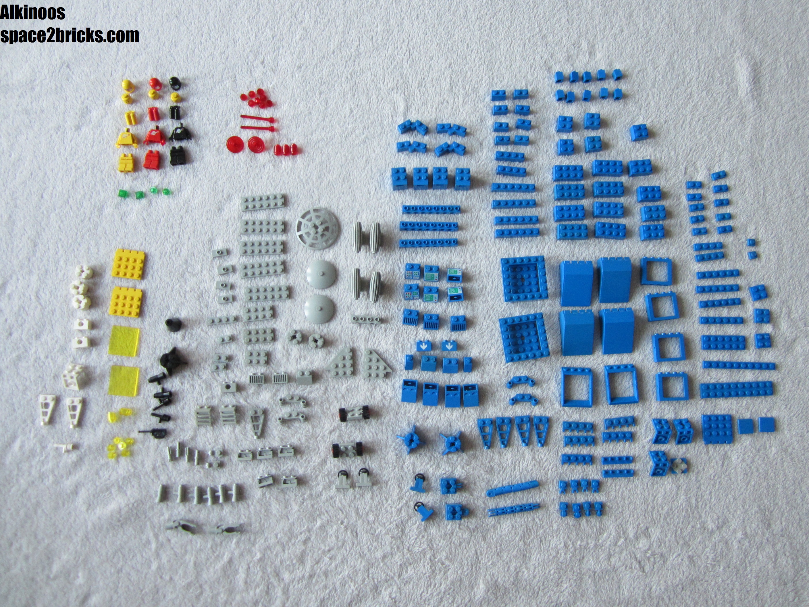 Inventaire des pièces : il manque 2 plate modified trans-yellow et 2 briques bleues avec logo space.