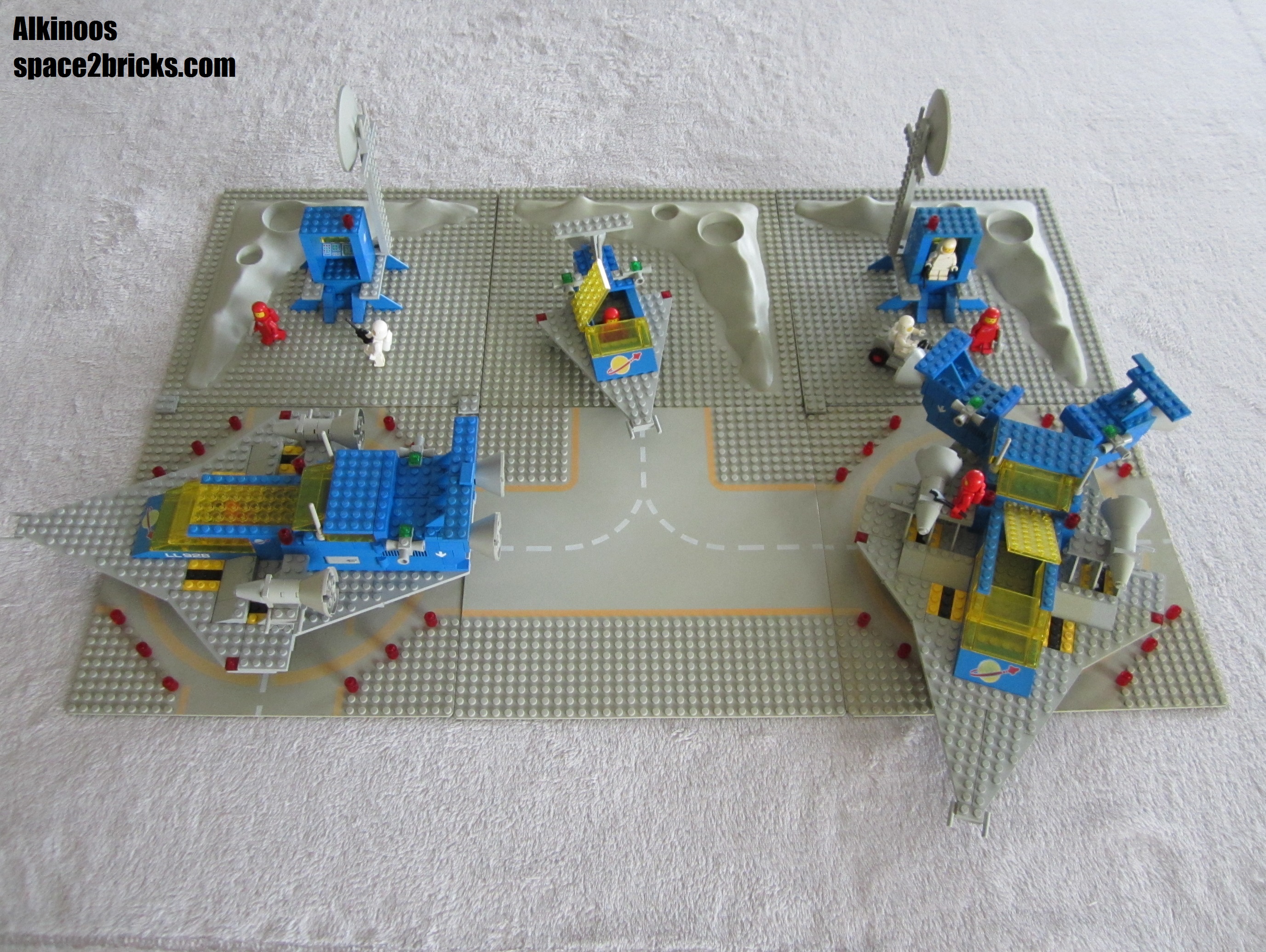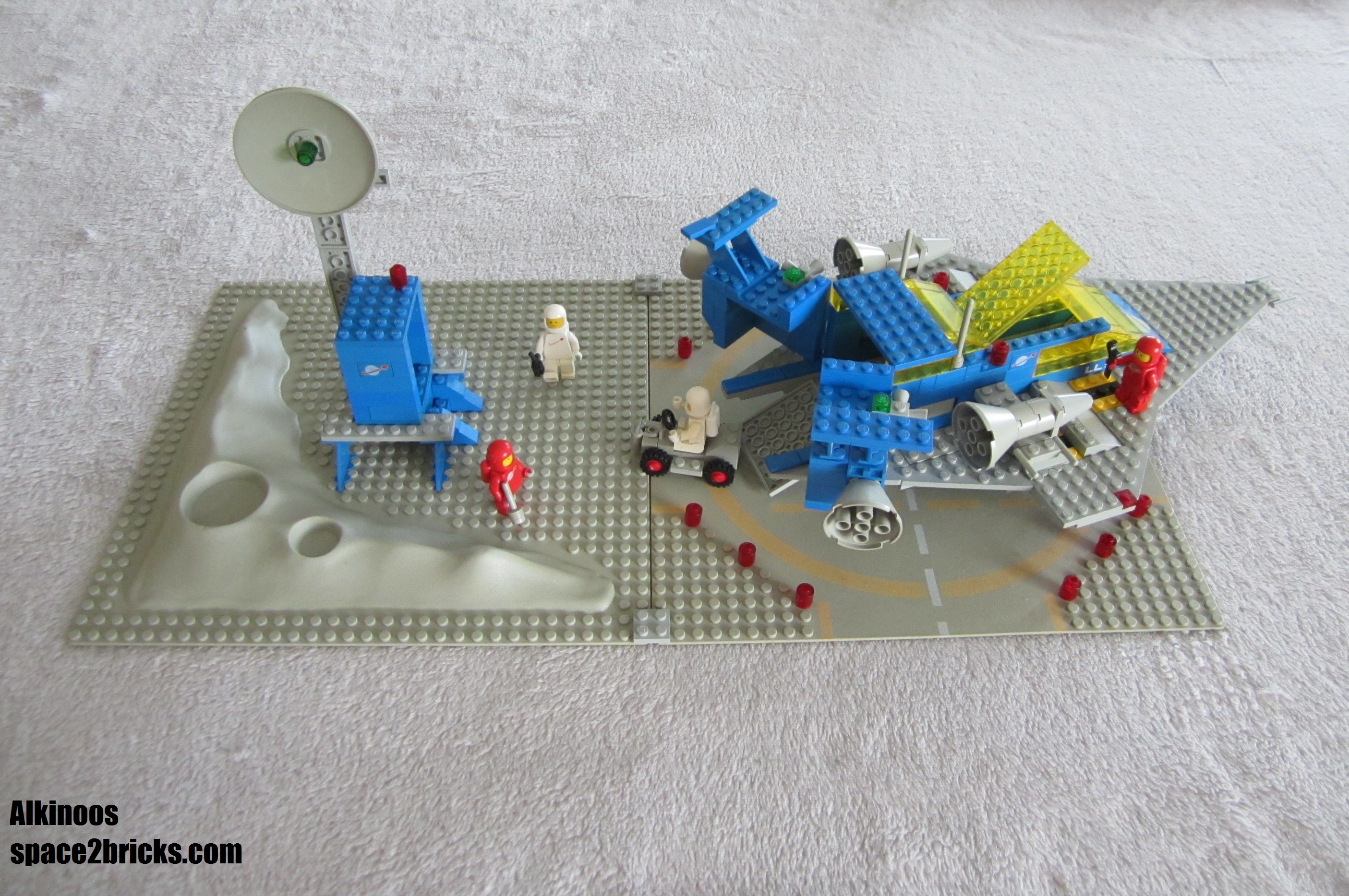 Il s’agit d’un des sets mythiques de l’âge du « space classic ». A l’époque, c’est un ensemble super complet, avec un vaisseau, 4 figurines, un petit rover et une base dans un bout de cratère et une piste balisée.