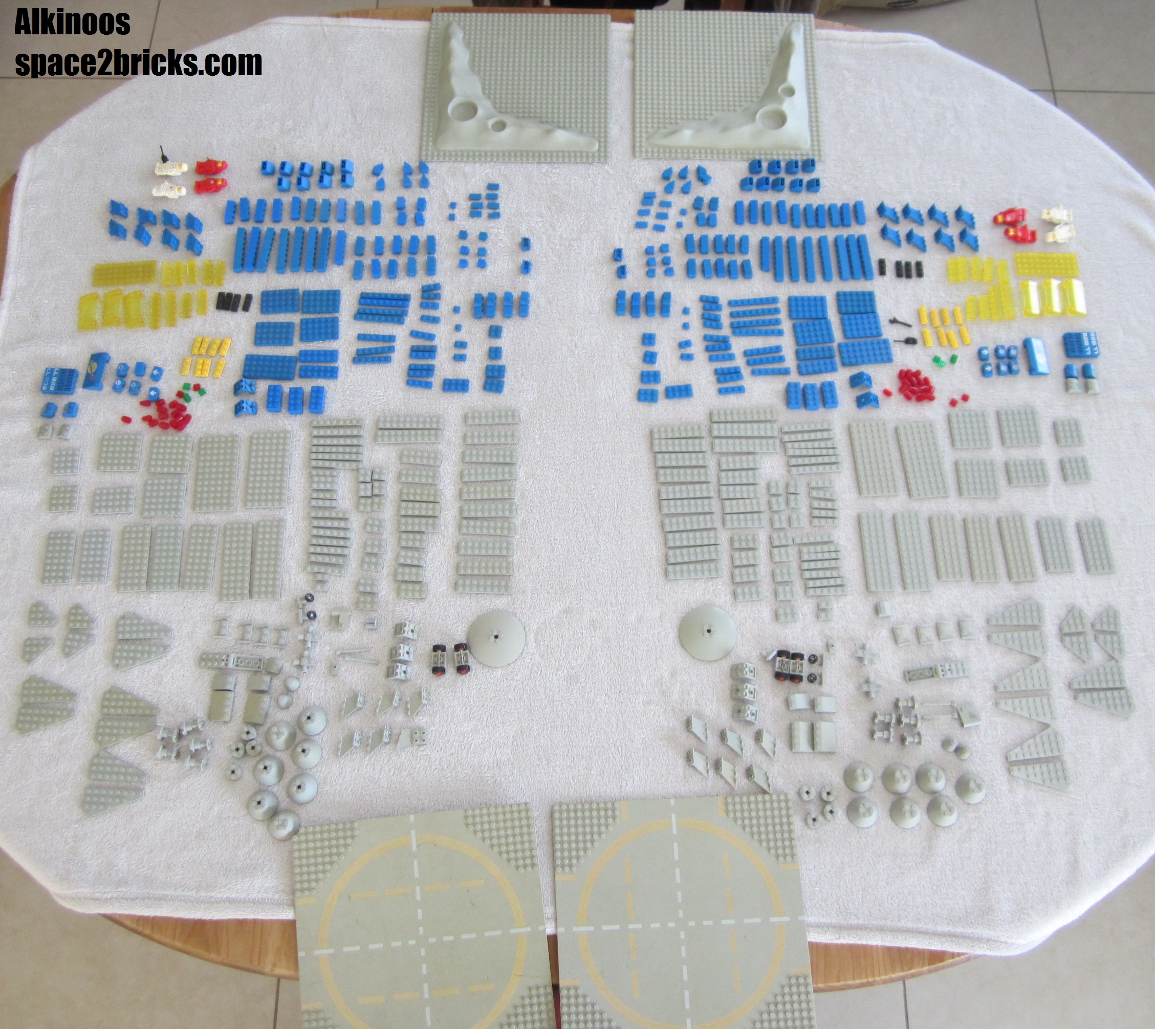 Voilà l’ensemble des pièces pour les deux sets. Beaucoup de gris et de bleu.