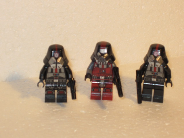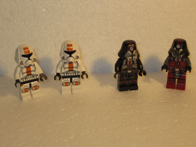 Les soldats sith en armes. A droite, le soldat du set sith fury class interceptor. Il y a de l’évolution du coté des jambes.