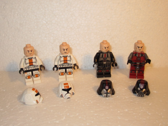 C’est un bon « battle pack ». Deux soldats dans chaque camp, comme ça pas de jaloux. Les soldats sith ne sont pas complètement nouveaux, car déjà sortis en 2012. Il y a une évolution avec la sériegraphie sur les jambes et un nouveau jeu de couleurs. Du coté de la République, on découvre de nouveaux casques. Ca fait de la nouveauté dans l’univers SW. Autant les casques sith ressemblent un peu à celui de Dark Vador, autant ceux de la République ne ressemblent pas du tout à ceux des clones ou à ceux de stormtroopers.